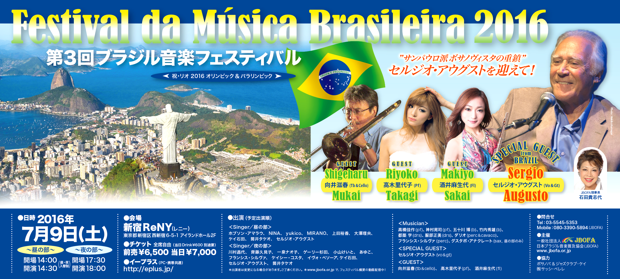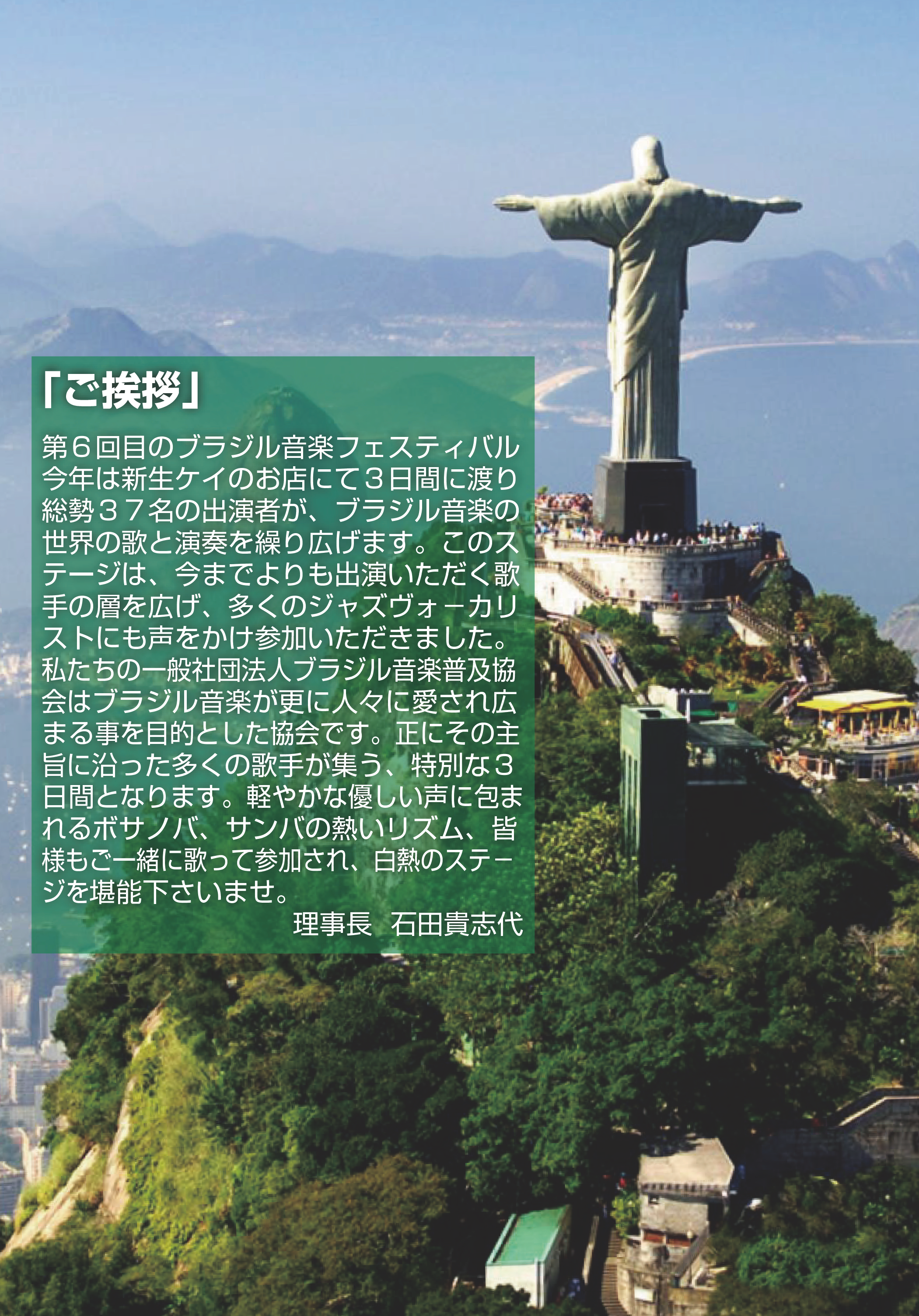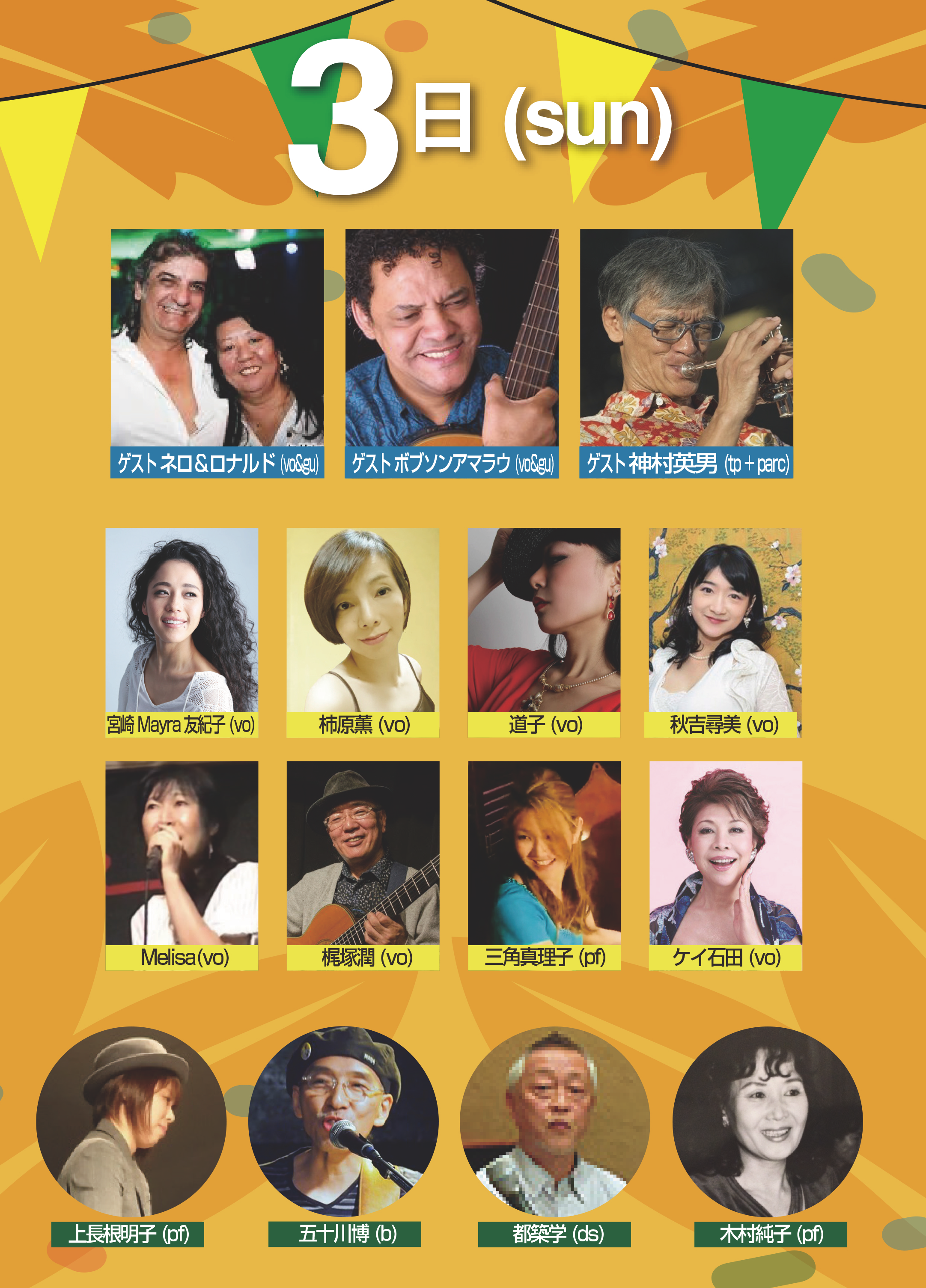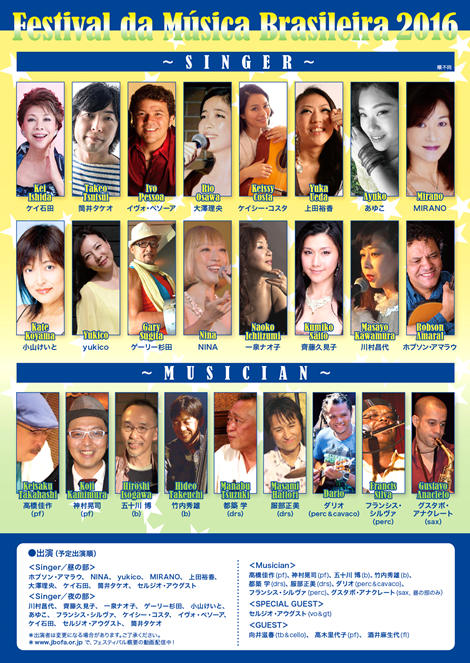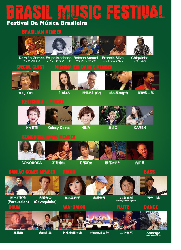 今年は趣旨を変え、ミニマムですが、毎日13人以上の出演者による熱いブラジルサウンド豪華なゲストと共に、白熱のステ−ジをお客様も一体となり、熱狂の三夜に酔いしれてください。