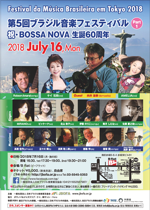 今年は2018年7月10日〜7月16日をブラジルウィークと冠り「ボサノヴァ&ジャズクラブ ケイ」とのコラボレーションでブラジル音楽三昧の毎日をお届けします。