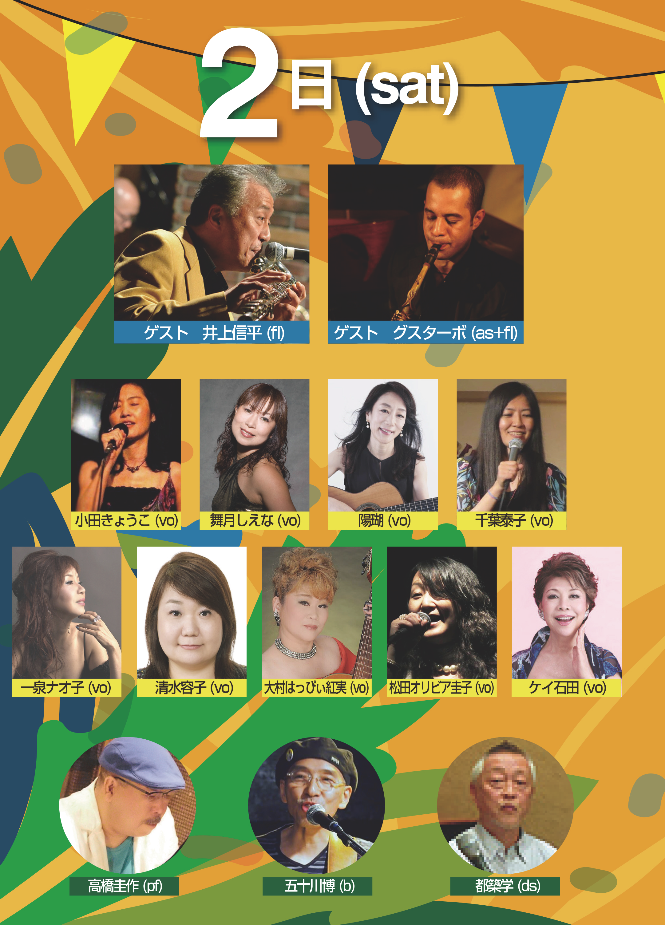 井上信平(fl) グスタ−ボ(as) 小田きょうこ・陽瑚・一泉ナオ子・千葉泰子・舞月しえな・清水容子・ケイ石田(vo)