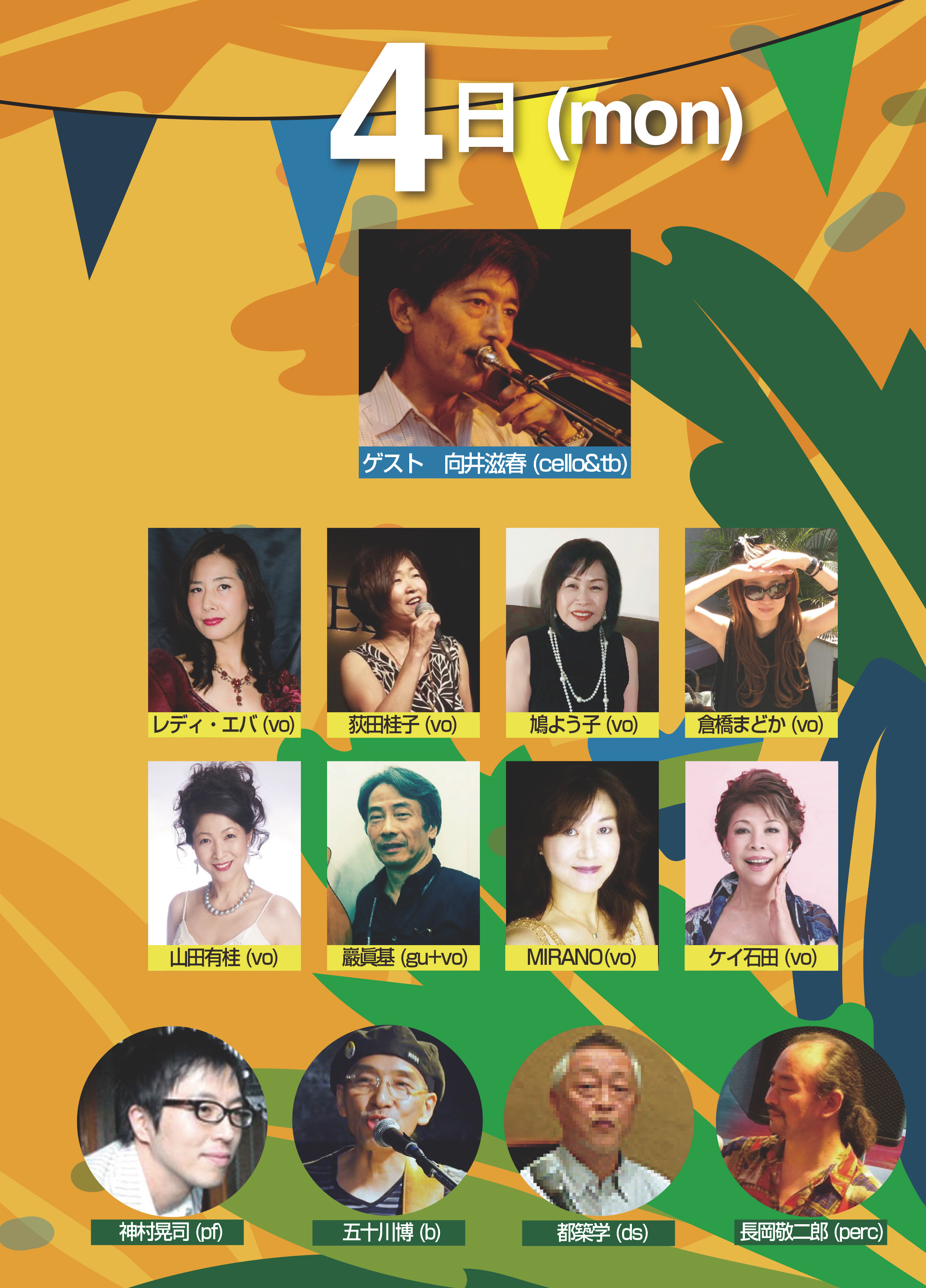向井滋春(tb+cello) 倉橋圓・萩田桂子・鳩よう子・山田有桂・レディ・エバ・MIRANO・ケイ石田(vo)・巌眞基(vo+gu)